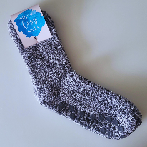 Soft, fluffy, and warm slipper socks in a lovely grey marl, with non-slip grips on the soles. A simple, cosy gift to keep feet comfy around the house.
