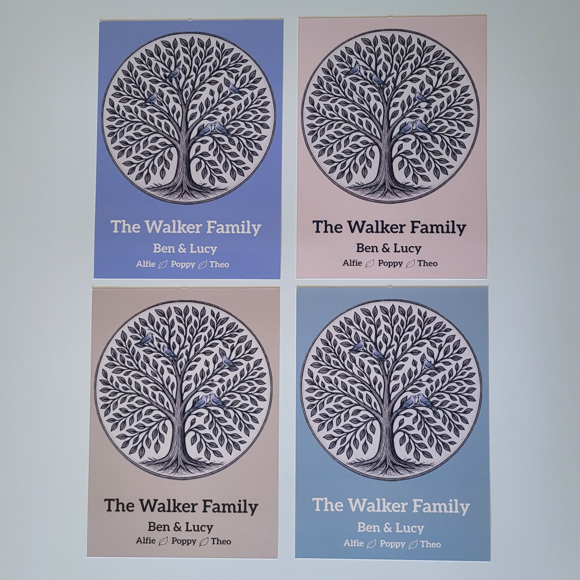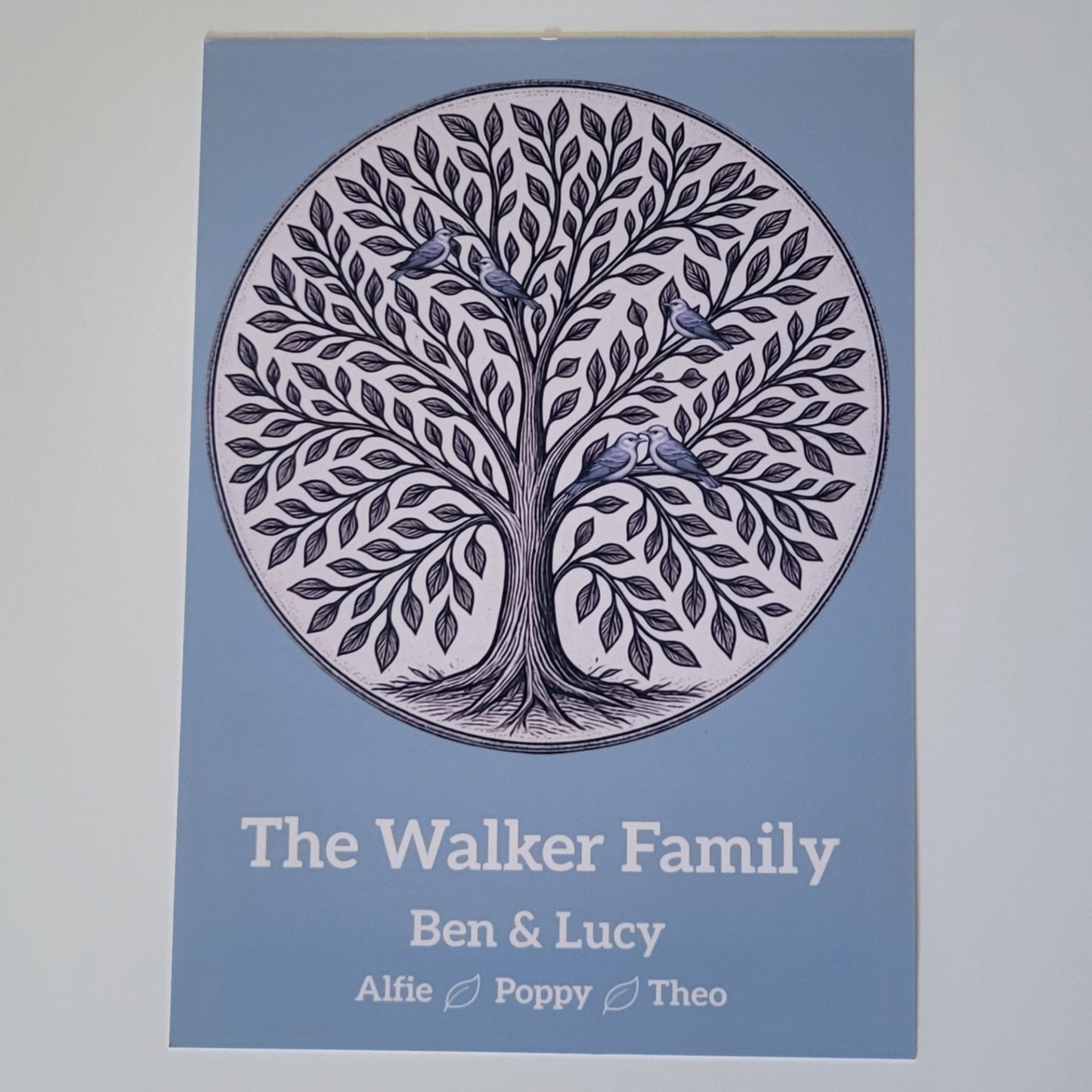 Each piece features our signature circular tree design, paired with softly coloured bluebirds and elegant typography. Designed to feel both meaningful and understated, it makes a thoughtful gift for weddings, anniversaries, new homes or growing families.