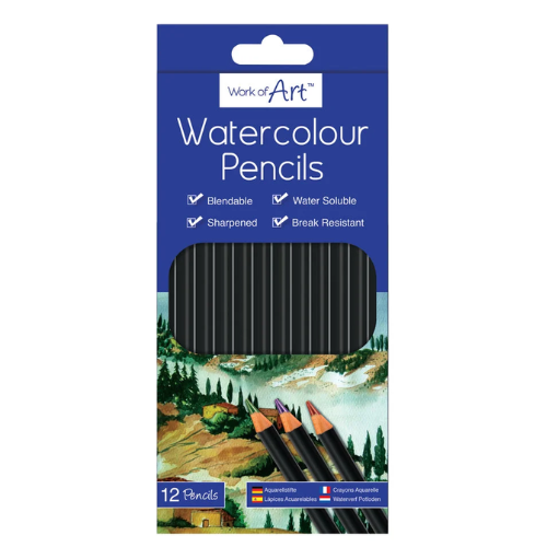 Add vibrant colour and soft watercolour effects to your artwork with this set of 12 watercolour pencils. Use dry like regular colouring pencils or add water for beautiful blended results. Pre-sharpened, break-resistant, and perfect for artists of all levels.